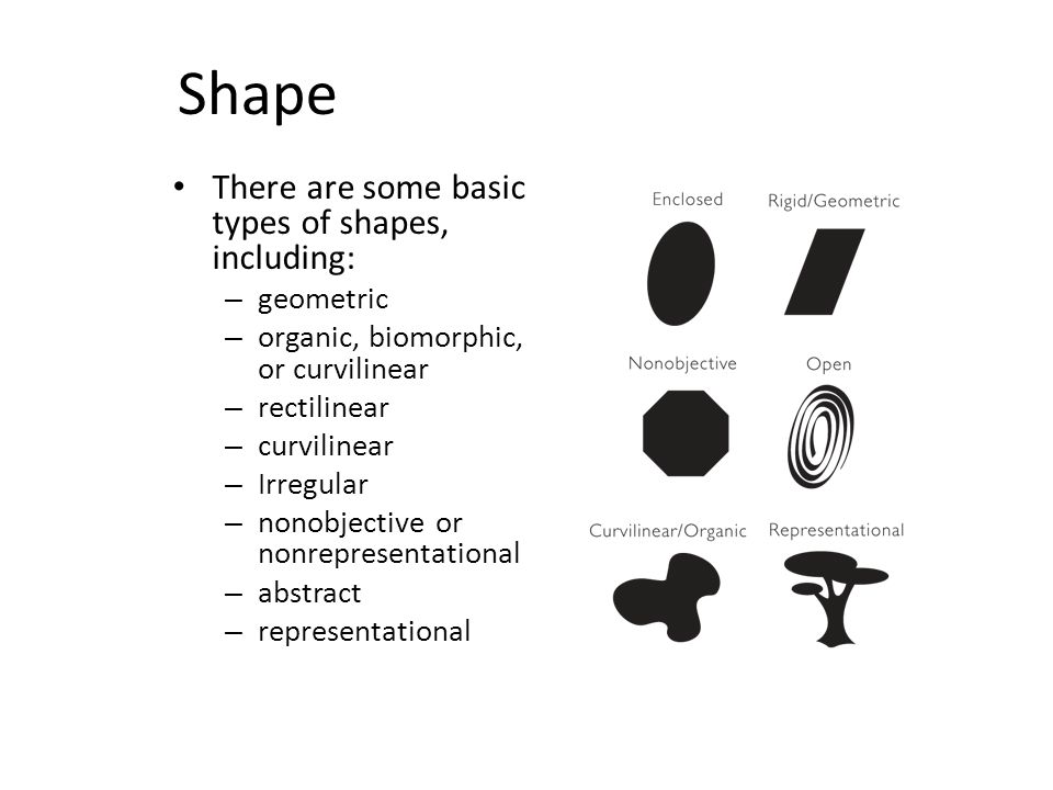 From lines we next get shapes, there are two types, geometric and organic (free-form). It is defined as a two dimensional area that stands out from the space next to or around it due to a boundary.